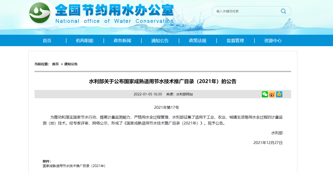 2021年12月31日,由河南威盛測(cè)控自主研發(fā)的一種基于物聯(lián)網(wǎng)的農(nóng)田灌溉用水智能計(jì)量技術(shù)技術(shù)入選《國(guó)家成熟適用節(jié)水技術(shù)推廣目錄》